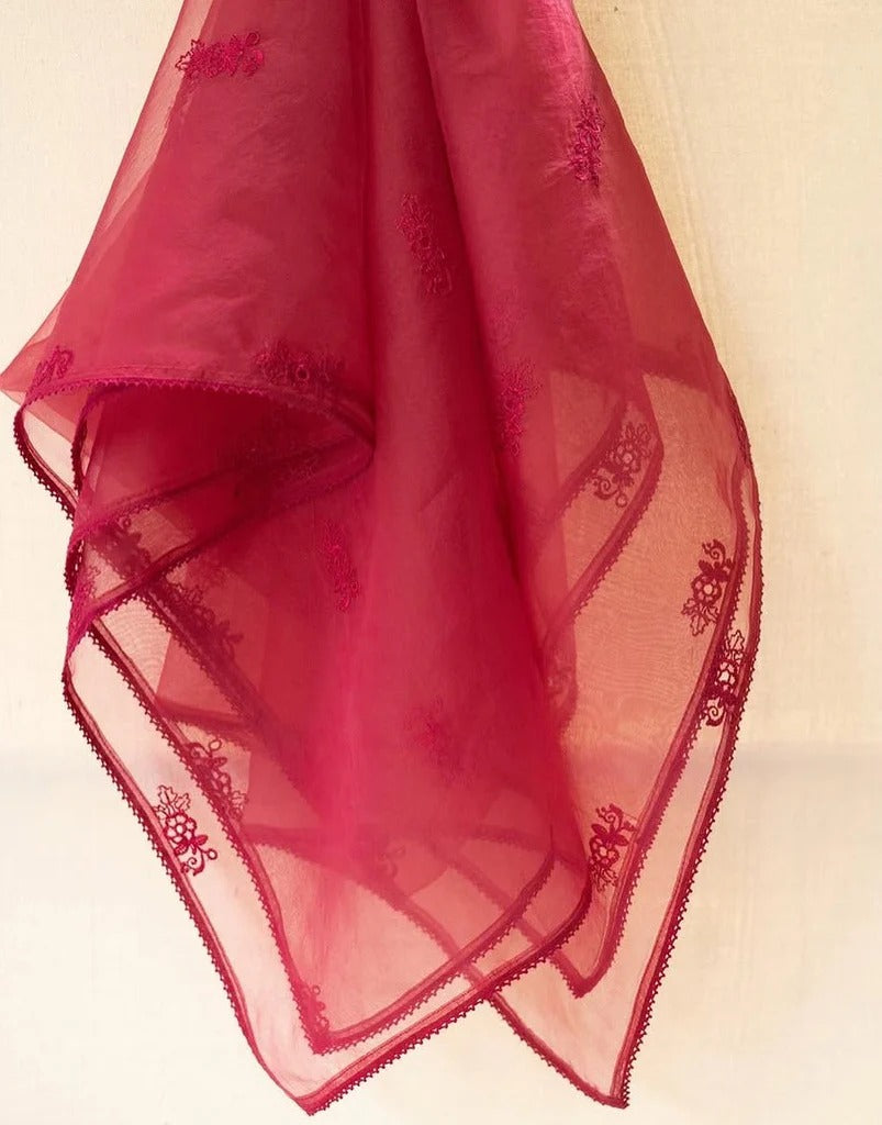 Designer 3-Pc Stitched Embroidered Dress | Cerise